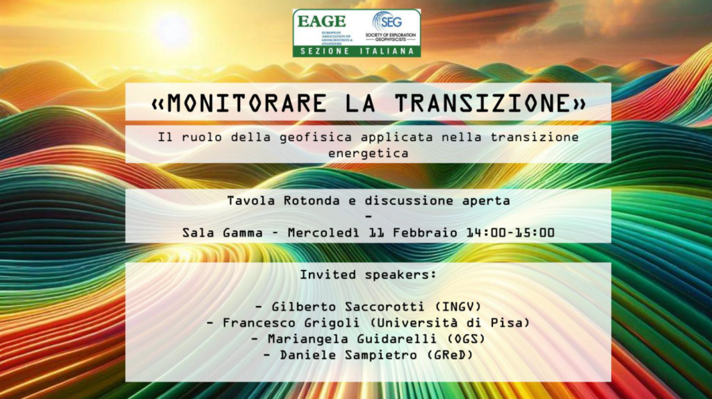 Mercoledì 11 febbraio, a partire dalle ore 14:00 in Sala GAMMA, si terrà una tavola rotonda sul ruolo della geofisica applicata nel monitoraggio della transizione energetica. L’evento chiuderà l’iniziativa “Monitorare la transizione” che ha visto la Sezione registrare videointerviste con esponenti dell’università, dei centri di ricerca e dell’industria.